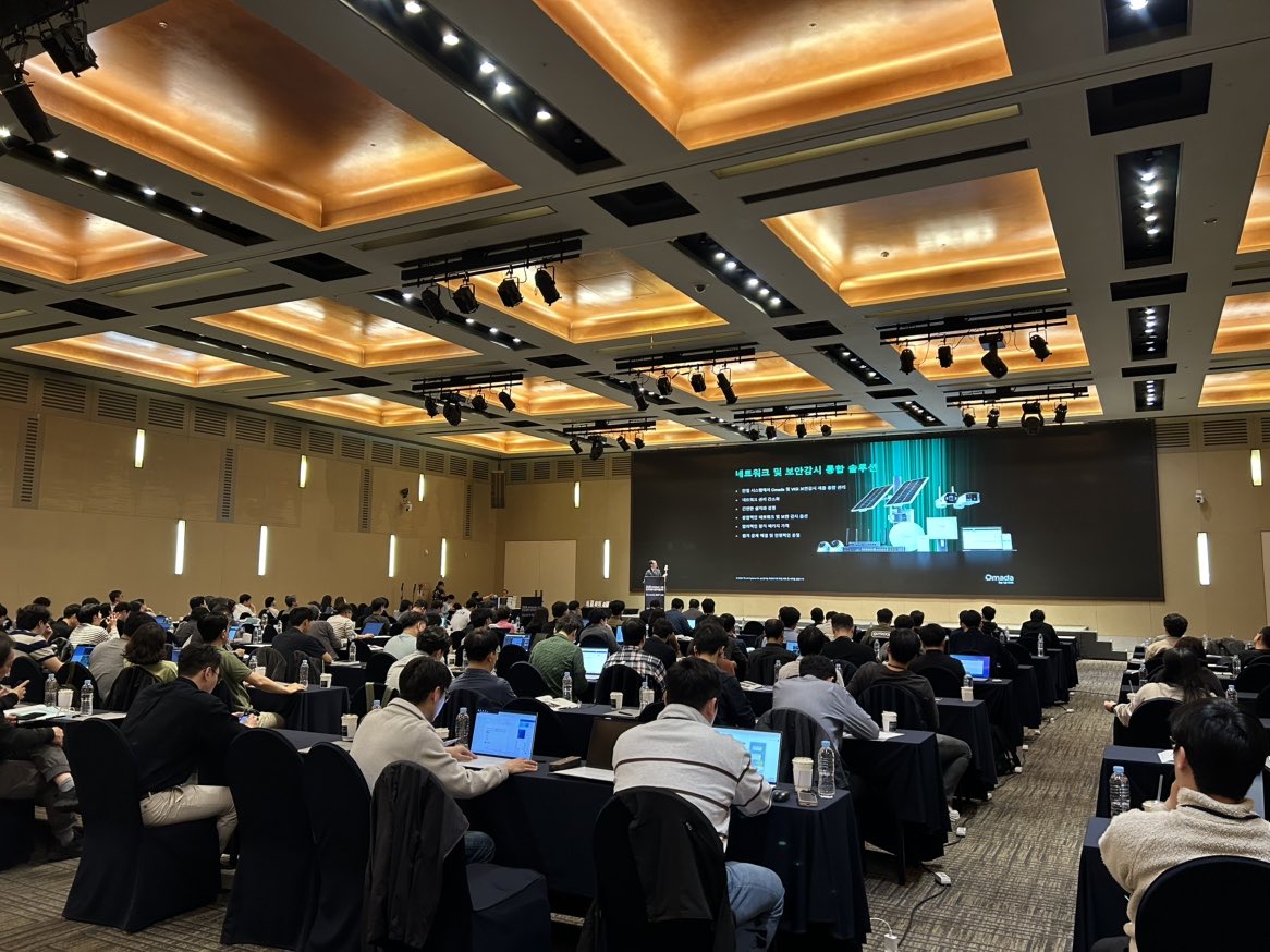 특히 행사 둘째 날(목요일)에는 Omada 기업영업팀 이민웅 부장이 약 20분간 발표를 진행하며, Omada Central 기반의 캠퍼스 IT 인프라 고도화 전략과 네트워크·영상 보안 통합 아키텍처를 주제로 실제 구축 방향성과 적용 방안을 소개했다.