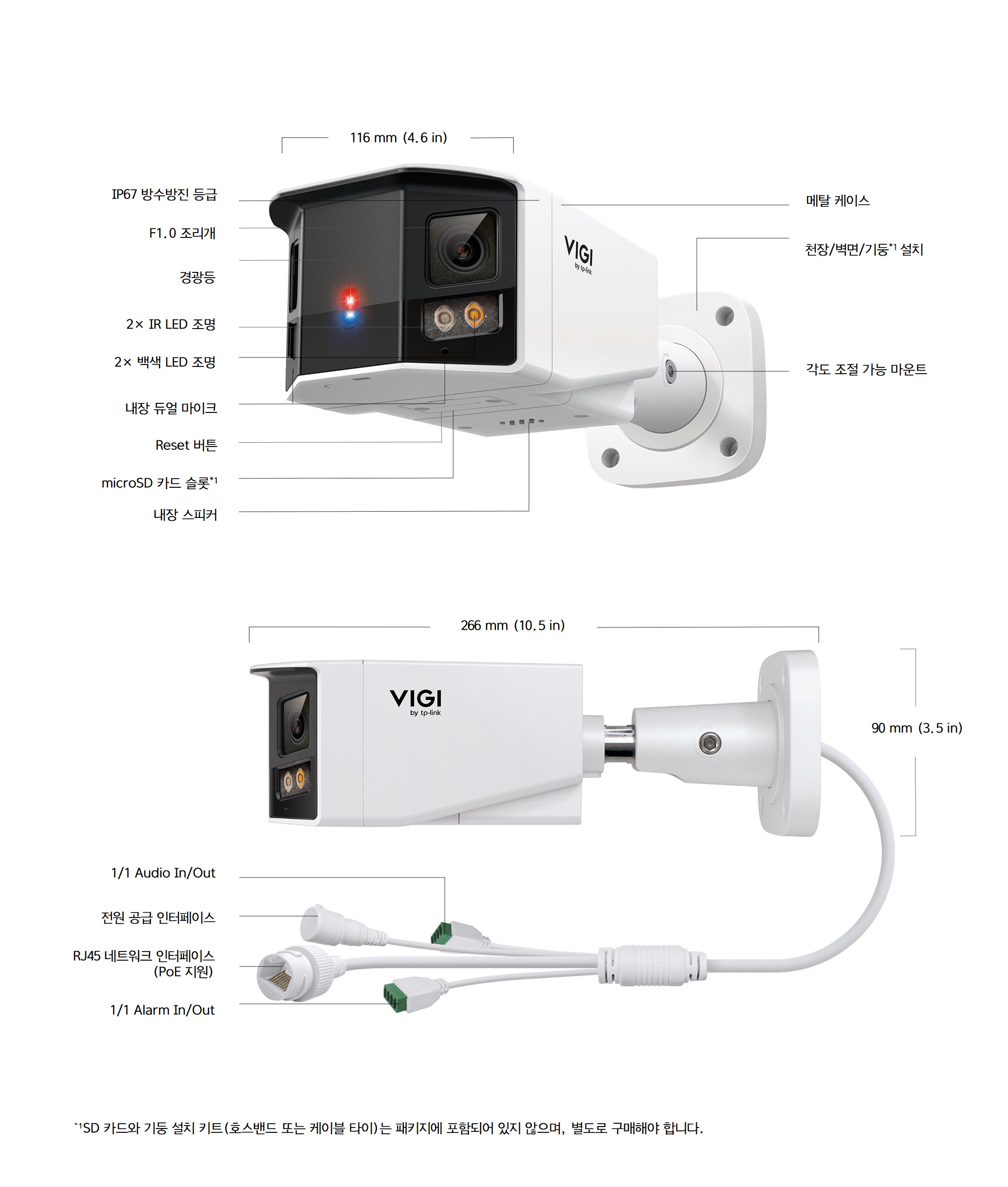 *microSD 카드와 기둥 설치 키트(호스밴드 또는 케이블 타이)는 패키지에 포함되어 있지 않으며, 별도로 구매해야 합니다.