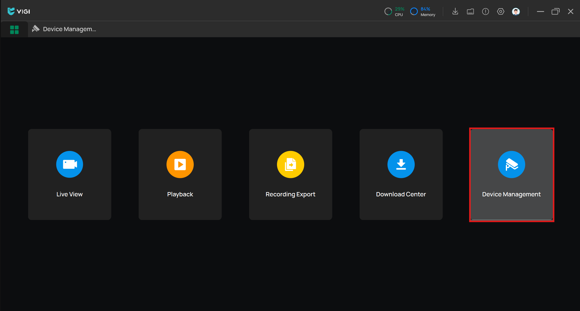 단계 1. VIGI PC Client에서 장치 관리(Device Management)로 인입합니다.