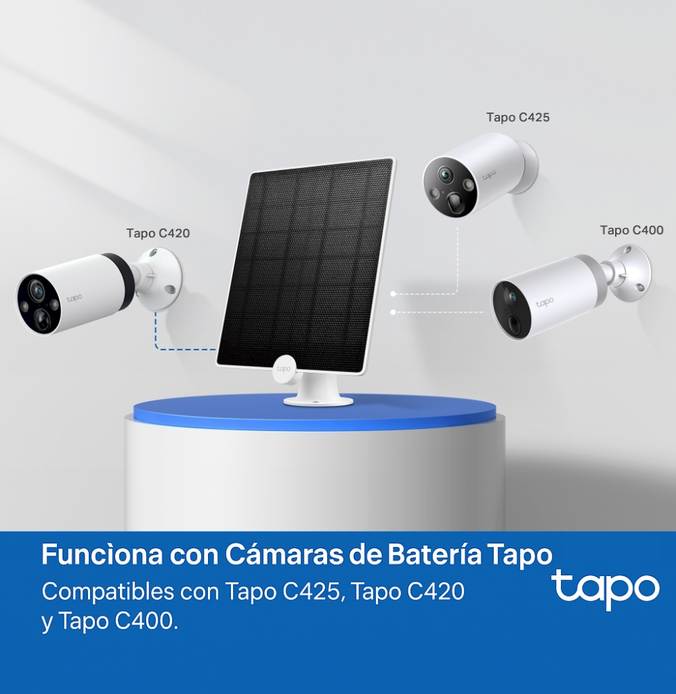 Compatible con Tapo C425, Tapo C420 y Tapo C400, permitiendo que tu cámara Tapo con batería te proteja todo el año.