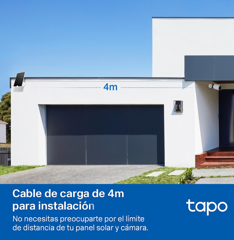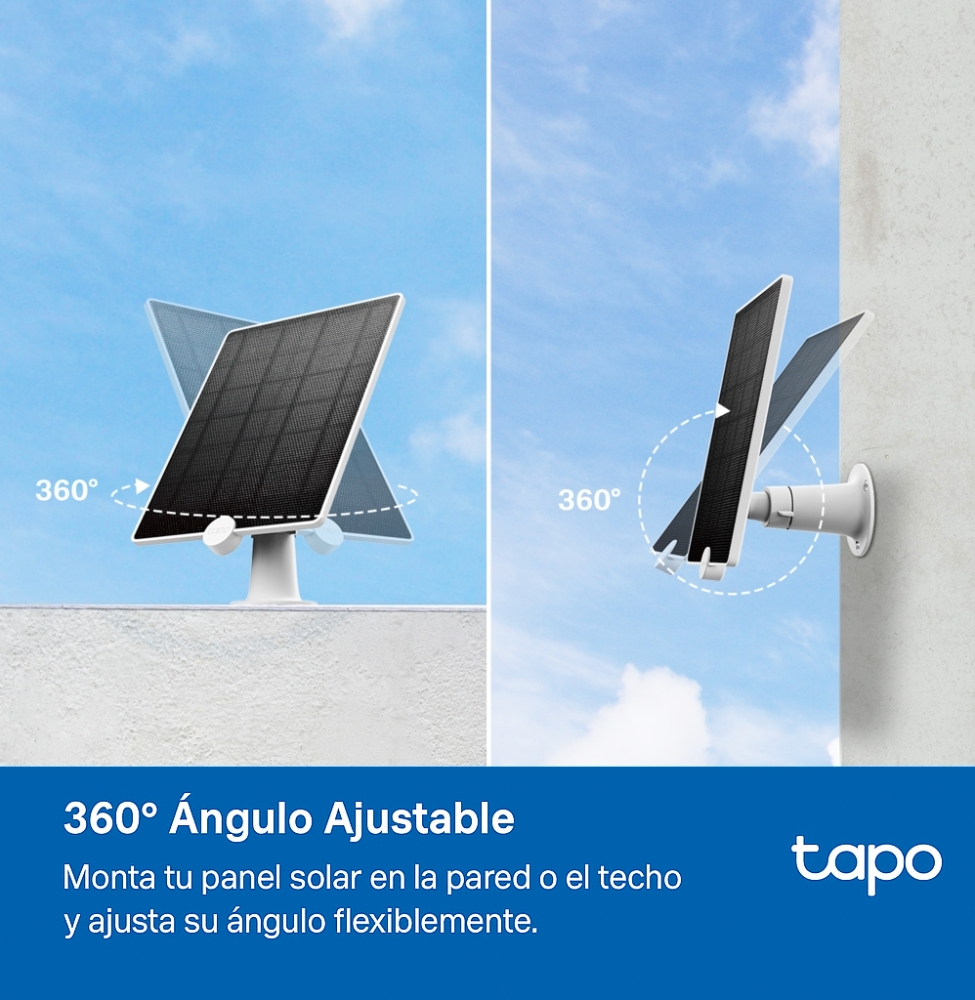 - Energía Solar Ininterrumpida- Captura energía solar limpia y gratuita, proporcionando un suministro constante de energía para tus cámaras Tapo con batería (Tapo C425, Tapo C420 y Tapo C400), asegurando protección durante todo el año.