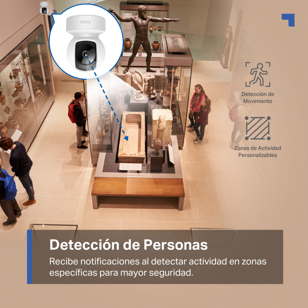 - Detección Inteligente con IA. Gracias a la tecnología de IA, la cámara emite alertas a medida que identifica personas, lo que reduce las falsas alertas y las notificaciones innecesarias.