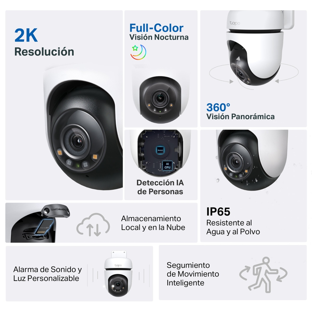 - Visión nocturna a todo color. Tapo C510W es capaz de grabar en total oscuridad a color.