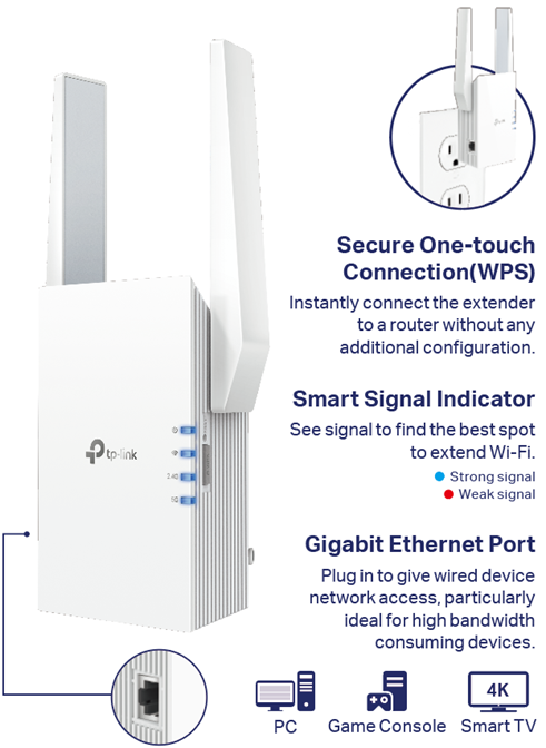 | Package Contents | Wi-Fi Range Extender RE605X, Quick Installation Guide |