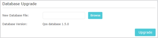 3. Go to Advanced > QoS > Database. Click Browse to select the database upgrade file, and then click Upgrade. Wait until the upgrade is completed and do not operate during the process.