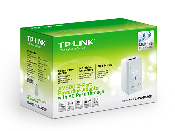 With advanced HomePlug AV technology, the TL-PA4020P can provide users with stable high-speed data transmission rates of up to 500Mbps over a household electric circuit for up to 300 meters. The TL-PA4020P is a great choice for a whole home solution to connect all network compatible devices--from computers and game consoles to set-top boxes for IPTV to printers and NAS hard drives.