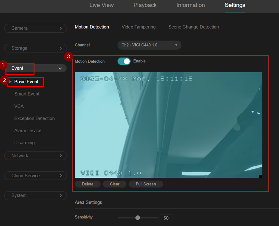 - On the NVR> Navigate to "Event" > "Motion Detection".