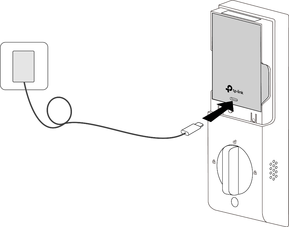 Installation is complete. Please set up your door lock and enjoy it. You can also charge the battery while the device is in use. Plug the provided USB cable into the battery pack's Type-C port, then connect it to a power outlet via a USB adapter with 5V/2A (or higher current) output.