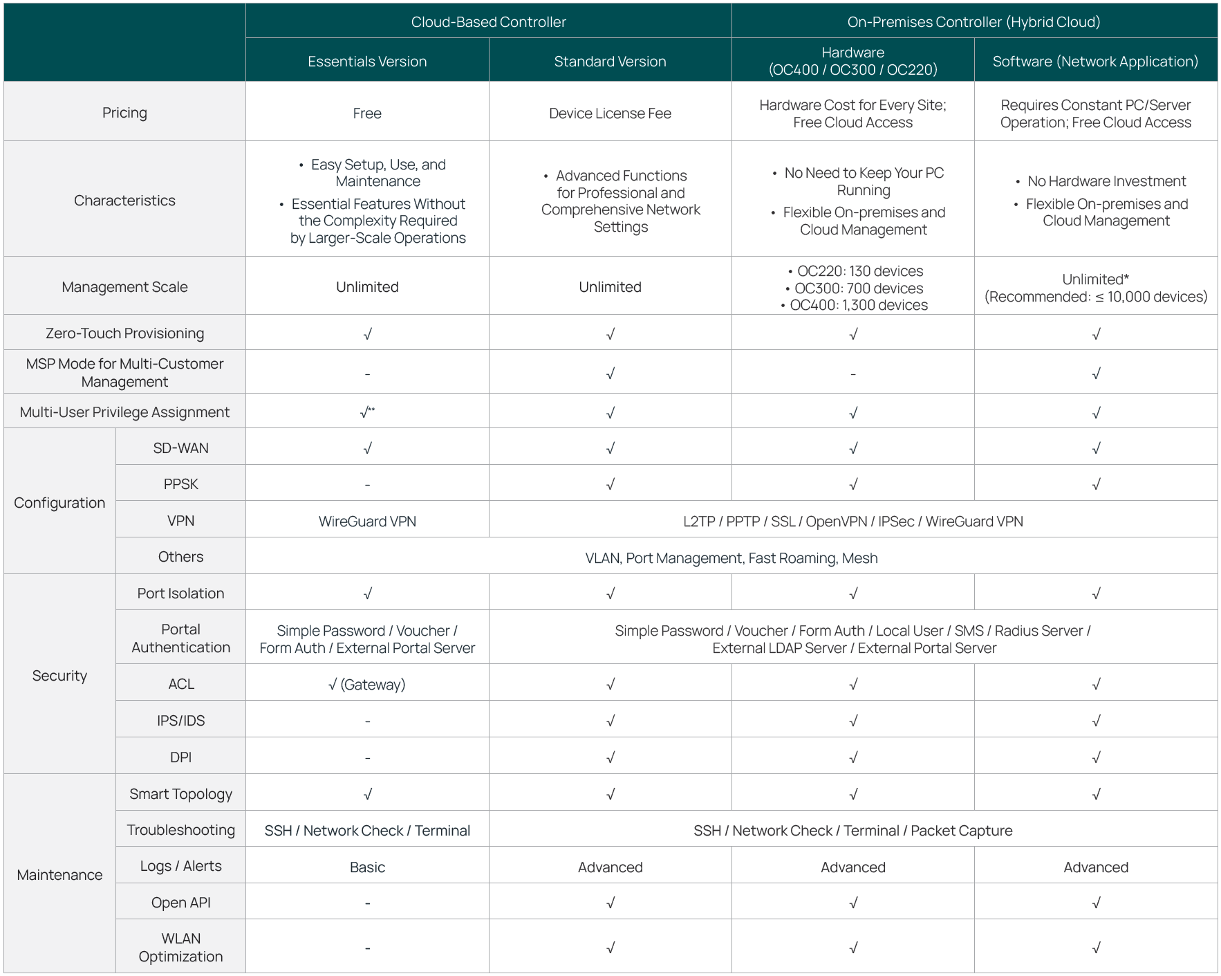 *Actual management scale of the Omada Software Controller depends on the PC/server’s hardware specifications.