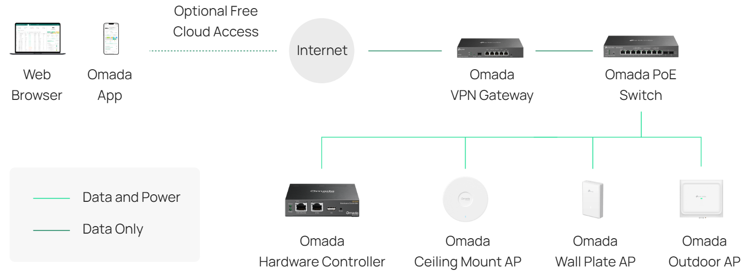As an Omada Hardware Controller, it supports hybrid cloud management for maximum convenience, whether you manage your Omada network locally or remotely without any license fees.