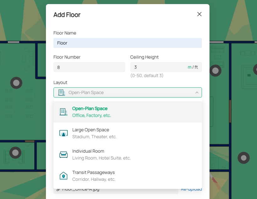 Choose from various space types, including rooms and passageways, each with built-in attenuation profiles for more accurate wireless simulations.