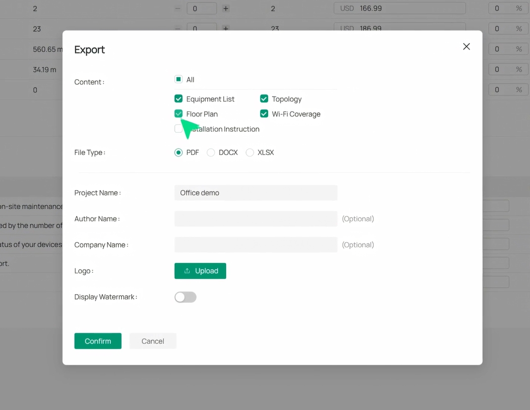 Effortlessly generate professional delivery reports with simulation results, topology maps, device lists, and more. Choose from multiple file formats and personalize your branding by adding your logo, company name, and designer info to streamline client communication and speed up deployment.