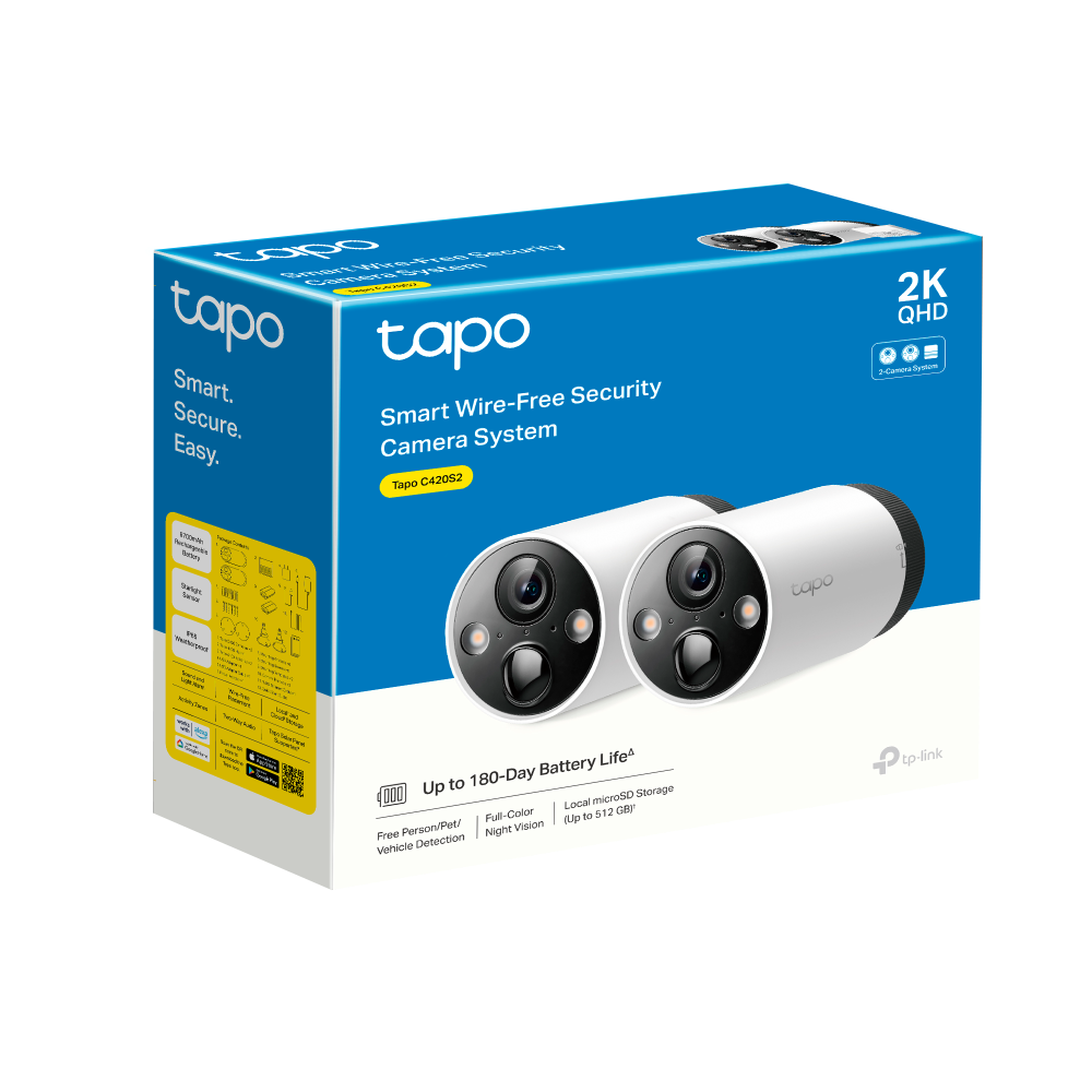 | Package Content | Tapo C420 Cameras (Battery Included) Tapo H200 Hub USB Adapter USB Adapter Cable DC Power Adapter Mounting Screws Mounting Templates Camera Brackets Quick Start Guide RJ45 Ethernet Cable |