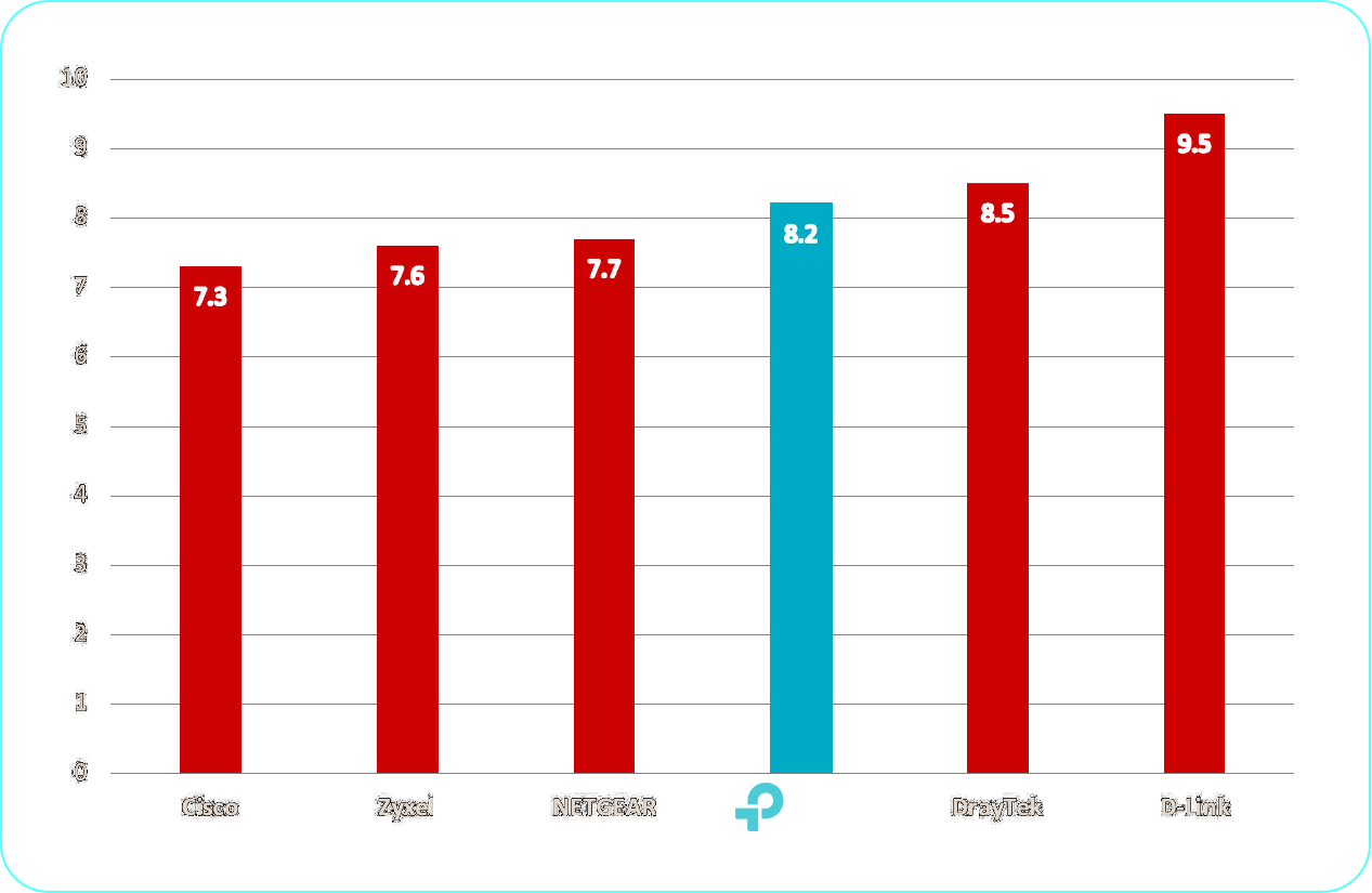 As shown in Figure 2, TP-Link ranks alongside ASUS, Zyxel, and other companies in a middle range of vendors.