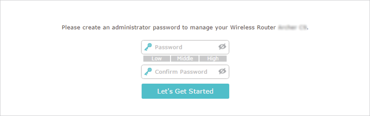 2.Visit http://tplinkwifi.net, and create a login password for secure management purposes. Then click Let’s Get Started to log in.