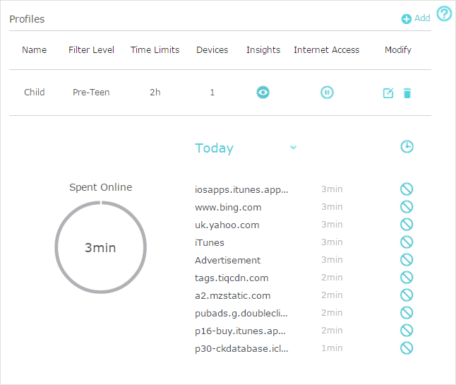Parental Controls allows you to set up unique restrictions on internet access for each member of your family. You can block inappropriate content, set daily limits for the total time spent online and restrict internet access to certain times of the day.