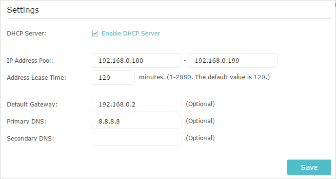 2 )Deselect Enable DHCP Server and click Save.