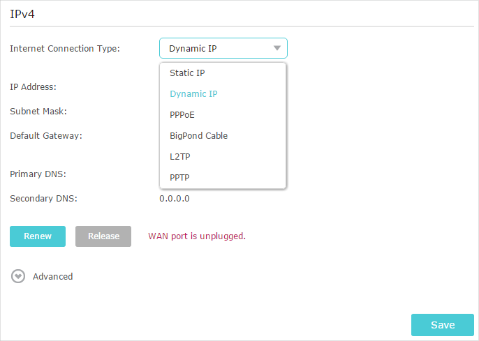 1 )Confirm your internet connection type, which can be learned from the ISP.