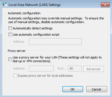 4 )Click LAN settings and deselect the following three options and click OK.