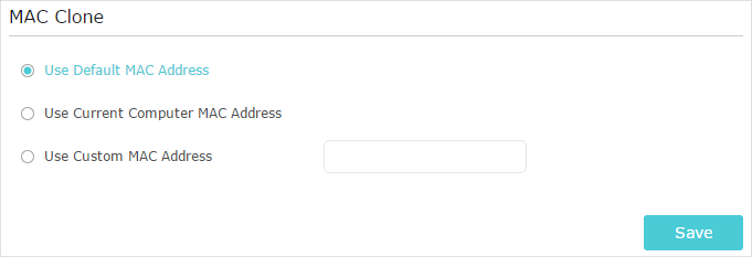 3 )Choose an option as needed (enter the MAC address if Use Custom MAC Address is selected), and click Save.