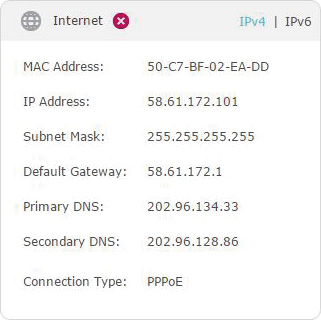 2.Go to Advanced > Status to check internet status: