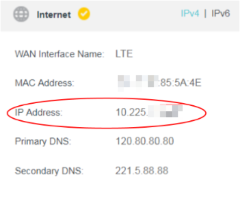 Chuẩn bị: Tham khảo bài viết Cách đăng nhập vào giao diện quản lý web của router TP-Link Wireless 4G LTE để đăng nhập vào giao diện web → vào Advanced → Status → kiểm tra địa chỉ IP trong cửa sổ Internet.