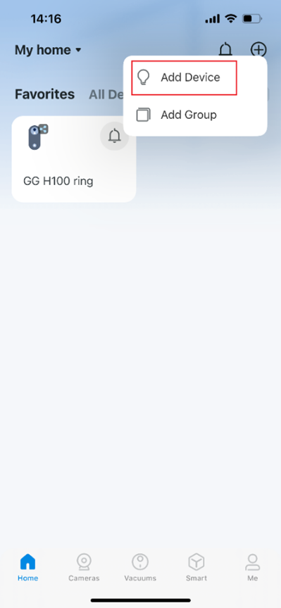 1. Nhấn nút + trong ứng dụng Tapo và chọn "Add Device" (Thêm thiết bị).