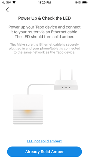 3. Kết nối Hub với bộ định tuyến (router) bằng cáp Ethernet, sau đó cấp nguồn cho Hub. Hãy đảm bảo điện thoại của bạn đang kết nối cùng một mạng với Hub. Đèn LED trên Hub sẽ chuyển sang màu vàng cam đứng yên.