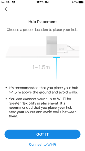 7. Nếu bạn muốn kết nối Hub với router qua mạng không dây, hãy nhấn Connect to Wi-Fi (Kết nối Wi-Fi). Chọn mạng Wi-Fi mà bạn muốn Hub kết nối, nhập chính xác mật khẩu và xác nhận lại mật khẩu.