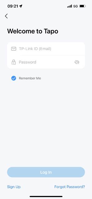 Bước 2. Đăng Nhập Mở ứng dụng và sử dụng ID TP-Link của bạn để đăng nhập. Nếu bạn chưa có ID TP-Link, hãy nhấn vào Sign Up (Đăng ký) để tạo tài khoản, ứng dụng sẽ hướng dẫn bạn các bước còn lại.
