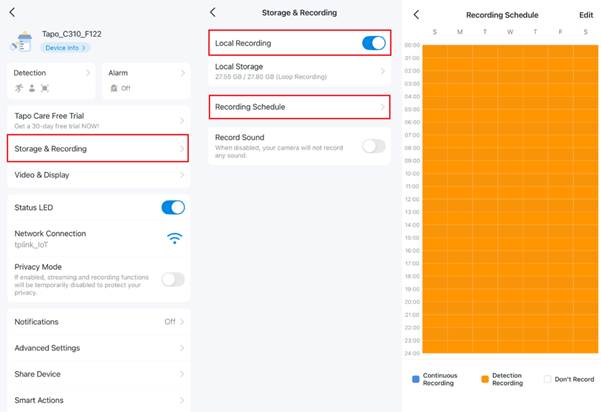 Lưu ý: Camera chạy bằng pin (như Tapo C420, C400, D230, v.v.) không hỗ trợ ghi hình liên tục.