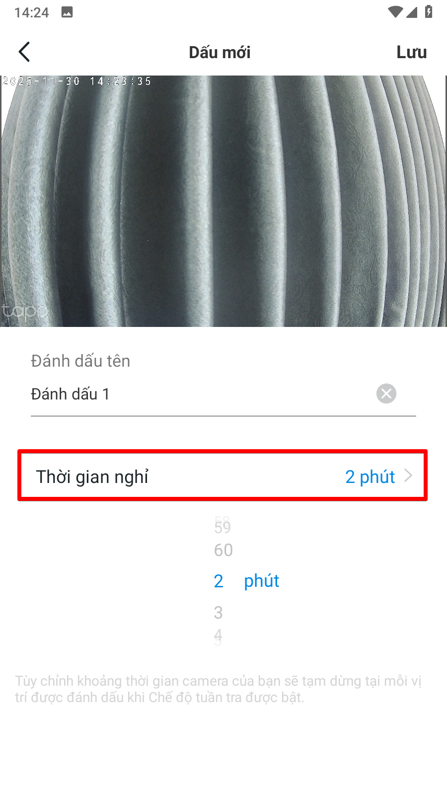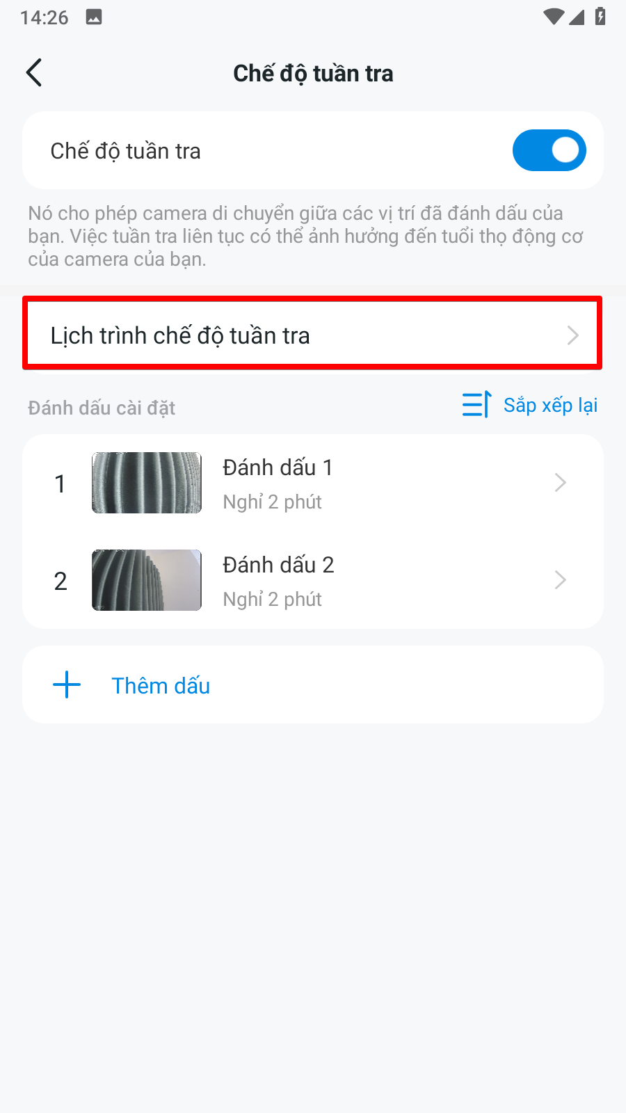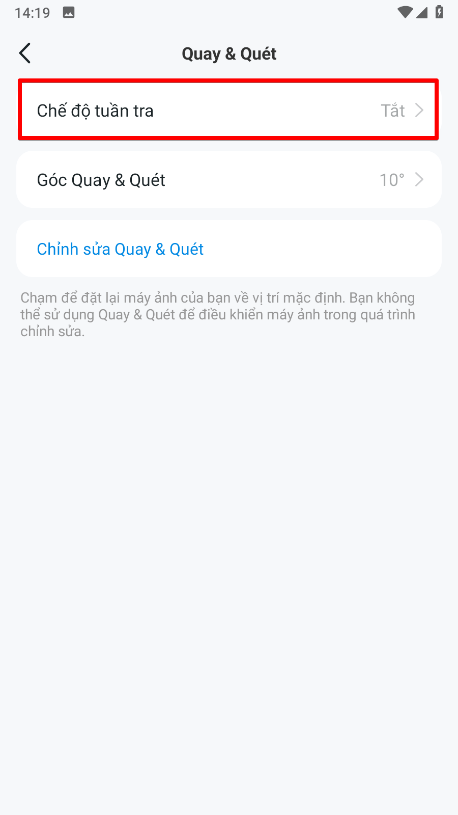 - Lưu ý: Việc tuần tra không ngừng có thể ảnh hưởng đến tuổi thọ động cơ của camera Tapo.