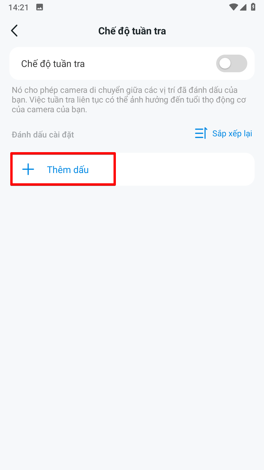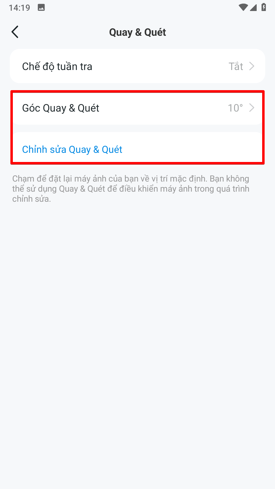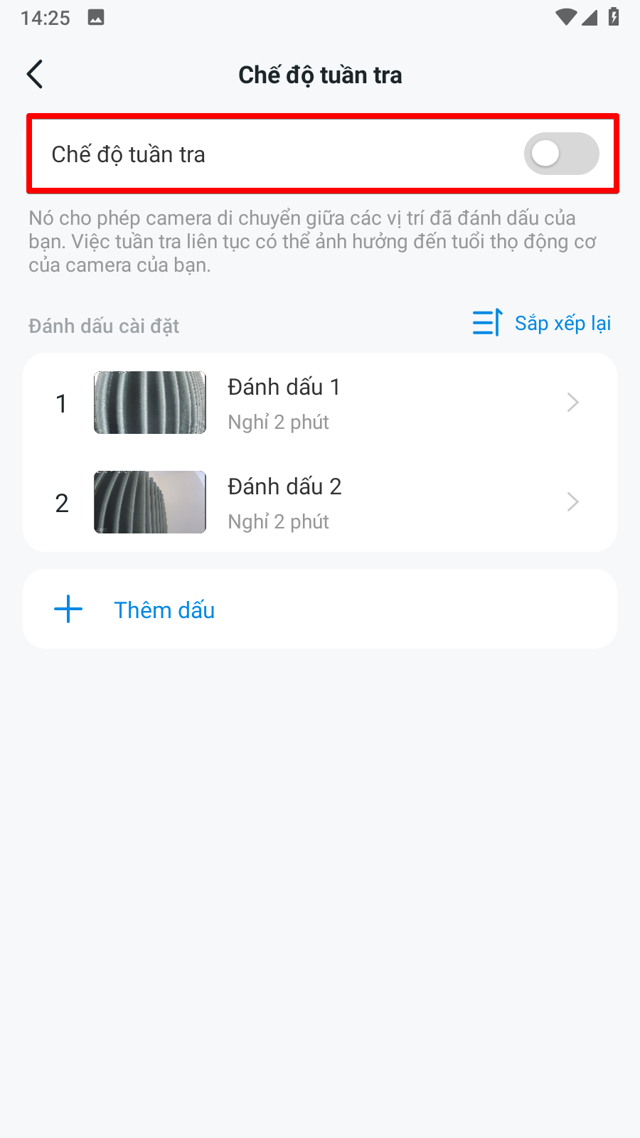 - Lưu ý: Việc tuần tra không ngừng có thể ảnh hưởng đến tuổi thọ động cơ của camera Tapo.