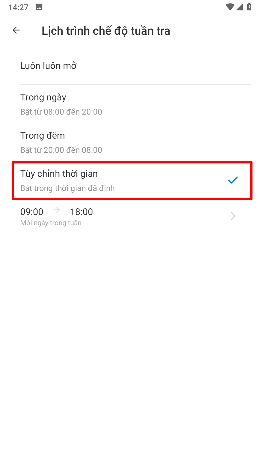 Bước 8. Chạm vào Patrol Mode Schedule (Lịch trình Chế độ Tuần tra). Bạn có thể chọn lịch trình cài đặt sẵn hoặc tùy chỉnh lịch trình. Chạm vào Save (Lưu) và camera sẽ di chuyển giữa các vị trí đã đánh dấu theo lịch trình.