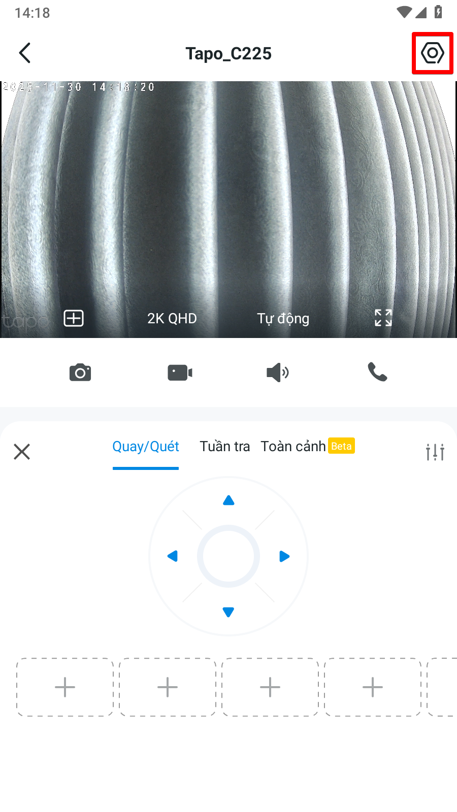 Bước 2. Chạm vào biểu tượng bánh răng để vào trang cài đặt camera.