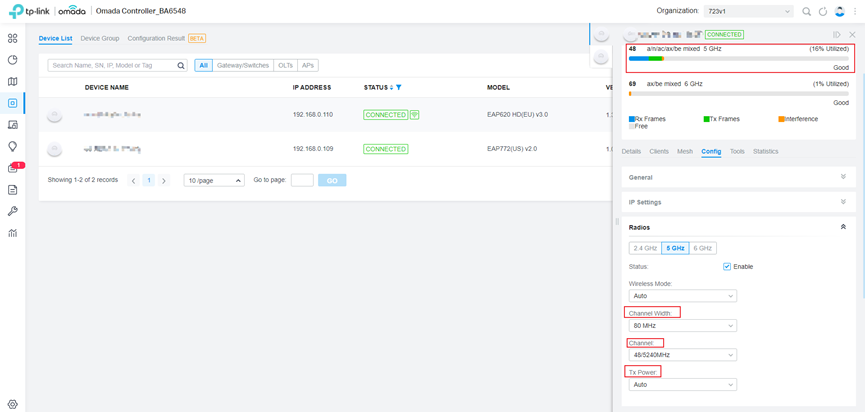 - Kiểm tra channel utilization: Thay đổi kênh, băng thông kênh (channel width) và Tx power, sau đó kiểm tra lại tốc độ.