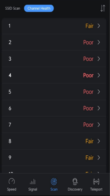 Trạng thái tắc nghẽn kênh có thể được kiểm tra bằng ứng dụng bên thứ ba liên quan đến hiệu năng Wi-Fi, và ứng dụng sẽ hiển thị trạng thái như ví dụ bên dưới.