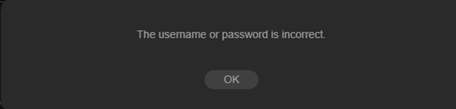 Nếu tên đăng nhập hoặc mật khẩu không đúng, một cửa sổ bật lên sẽ hiển thị thông báo “The username or password is incorrect.”, và việc thêm IPC sẽ thất bại.
