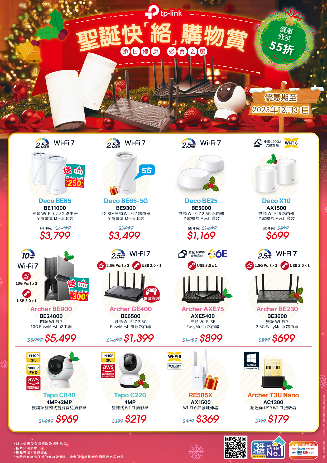 TP-Link 2025聖誕快「絡 」購物賞 優惠低至55折